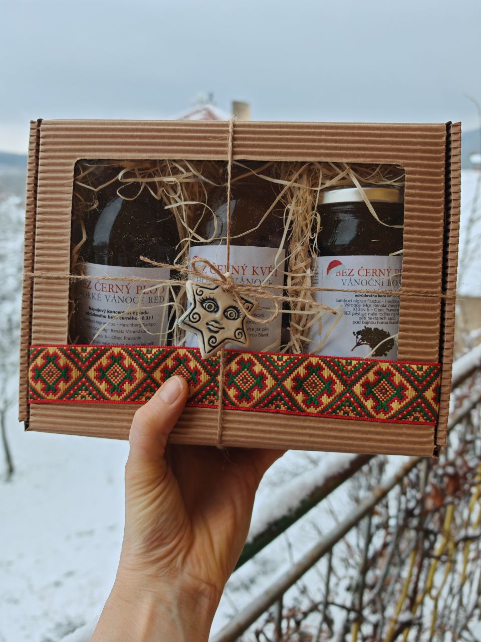 - 1 sklenice 330 ml koncentrátu plodu černého bezu se skořicí a hřebíčkem – Horké Vánoce RED