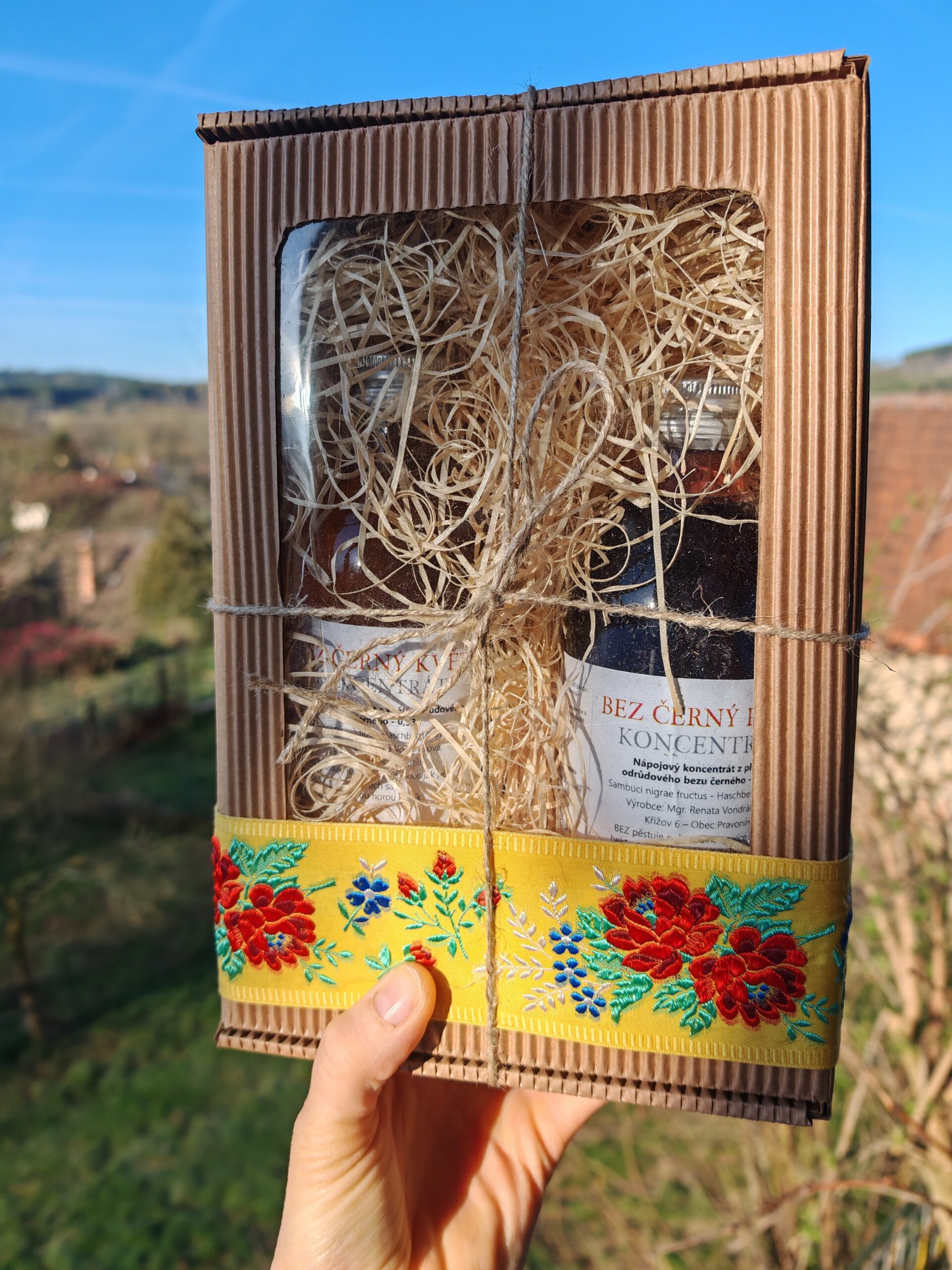 • 1 sklenice 330 ml koncentrátu plodu černého bezu